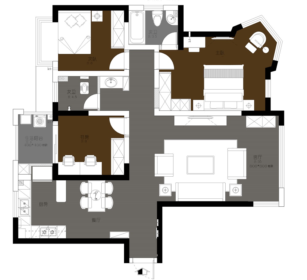 120㎡ · 三居室 · 雅致現(xiàn)代